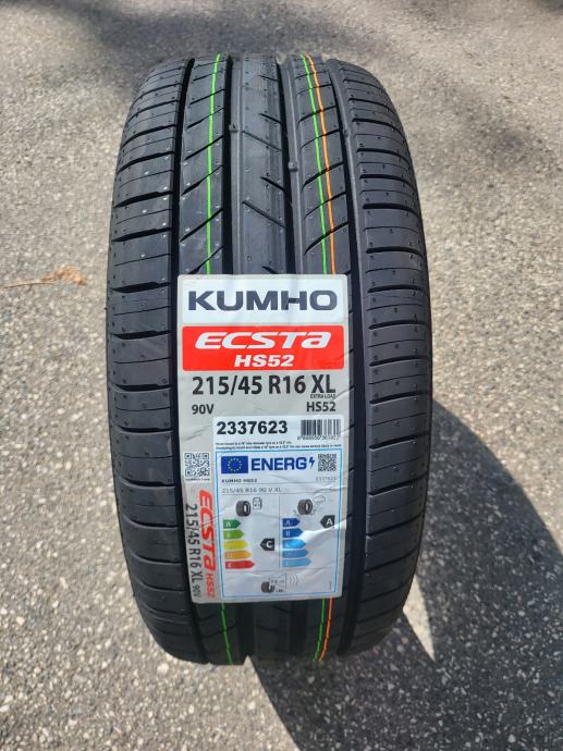 Nove ljetne gume Kumho Ecsta HS52, dimenzije 215/45/16, supet guma po akcijskoj cijeni. Gume su nove s naljepnicama, nikad montirane na vozilo, svježi DOT. Mogućnost montaže. Cijena po komadu 80 eura.