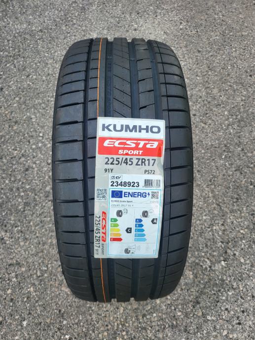 Nove ljetne gume Kumho Ecsta Sport PS72, dimenzije 225/45/17. Gume su nove s naljepnicama, nikad montirane na vozilo, svježi DOT, novi model Kumho gume. Mogućnost montaže. Cijena po komadu 63 eura.