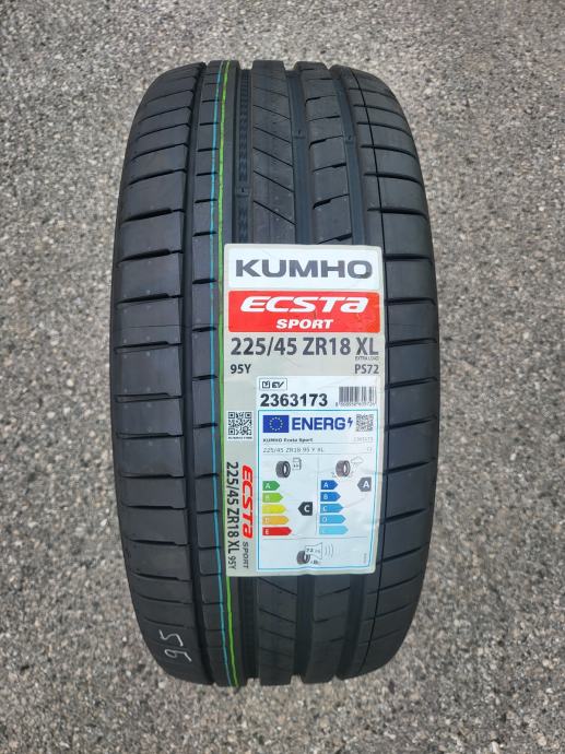 Nove ljetne gume Kumho Ecsta Sport PS72, dimenzije 225/45/18. Gume su nove s naljepnicama, nikad montirane na vozilo, svježi DOT, novi model Kumho gume. Mogućnost montaže. Cijena po komadu 90 eura.