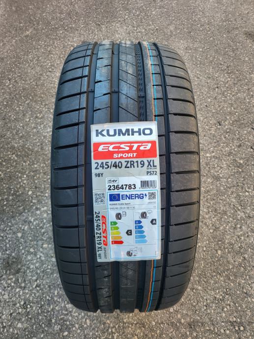 Nove ljetne gume Kumho Ecsta Sport S PS72, dimenzije 245/40/19. Gume su nove s naljepnicama, nikad montirane na vozilo, svježi DOT novi model Kumho gume. Mogućnost montaže. Cijena po komadu 109 eura.