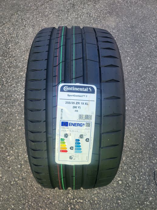 Nove ljetne gume Continental Sport Contact 7, dimenzije 255/35/19. Gume su nove s naljepnicama, nikad montirane na vozilo, svježi DOT, potpuno novi model gume. Mogućnost montaže. Cijena po komadu 160 eura.