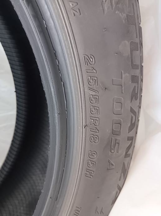 Prodajem 4 ljetne gume Bridgestone Turanza dimenzije 215/55R18 95H. Gume su vožene oko 4.000 km i u odličnom su stanju. DOT oznaka vidljiva na fotografiji - guma proizvedena u 24. tjednu 2024. godine.