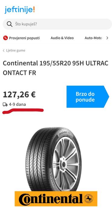 Gume ljetne Continental 195/55 R20. Dot:2022. ri.7.mm (Dvije 140.eur)