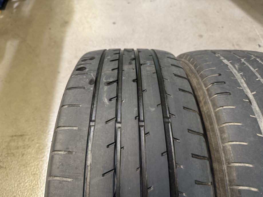 Prodajem ljetne gume dimenzija 225/55 R19. Dvije od njih su marke Continental Super Contact 6 (Dot 3020), a dvije Toyo Proxes R46 (Dot 0418). Continental gume su jos uvijek u dobrom stanju (4,5 - 5 mm), Toyo su starije i iskoristenije te nemaju utjecaj na cijenu i dolaze kao gratis uz Continental. Cijena za set je 80€.