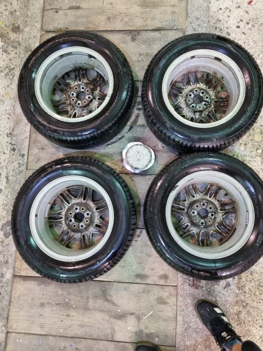 Set aluminijskih felgi sa ljetnim gumama Firestone skinute sa Lancie Lybre.