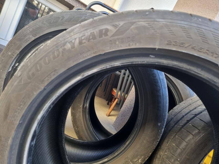 Gume u dobrom stanju makar dosta vožene pa je najmanji utor 5mm na dvije, dok je na druge dvije nekih 0.3mm više.