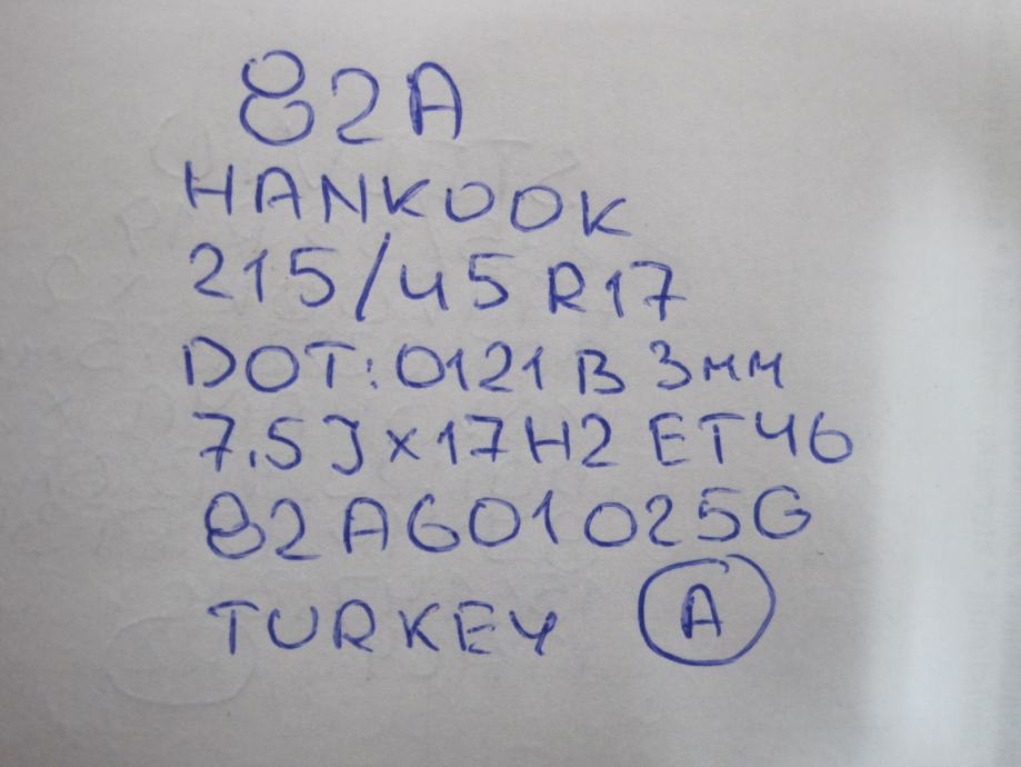 Gume ljetne Hankook 215/45/17 4 kom. AUDI A1 82A FELGE SA GUMAMA 21