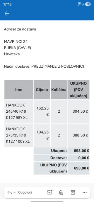 Prodajem gume hankok ljetne, 2x 275 35 19 i 2x 245 40 19, bile na e coupe... presle 13 000 km... placene 700, prodajem za 350 sve 4. Jedna je bila probusena ali je zakrpljena..