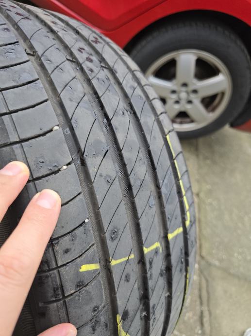 Gume imaju još 5 mm ripne. Svaka guma na vanjskoj strani ima po malo oštećenje od rubnjaka koje se vidi na slikama ali to ne utječe na performanse gume. Iz tog razloga cijena za sve 4 je 50 €.