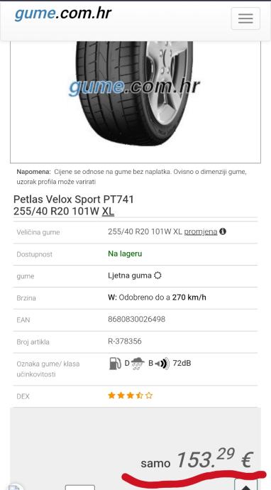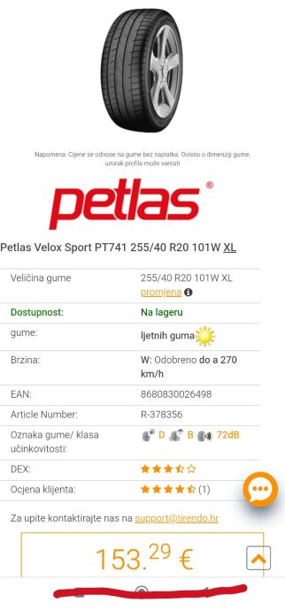 Gume ljetne Petlas 255/40 R20. Dot:2023. Ka NOVE ( Dvije 140.eur)
