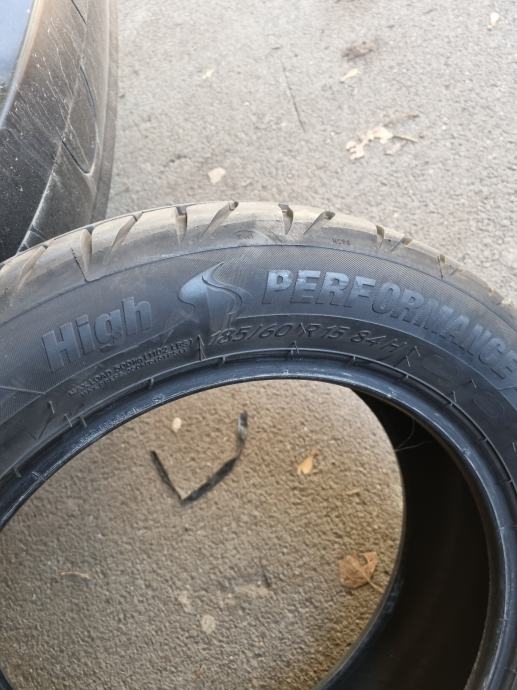 "Taurus" grupacija Michelin,185/60/15 84 H, 84 nosivost 500 kg po gumi, max.brzina 210km/h,vozene samo 5000 km ,na 90% od novih, dubina utora 7.20 mm sve cetiri gume,nove imaju 8 mm dubinu utora. Zvati na 098 206 777