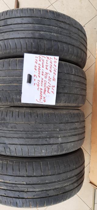 Prodajem 4 kom. ljetnih guma marke Fulda Eco Control HP Dimenzije guma su : 205/55-16 (91 V), 2017 g. Dubina profila je 6 mm (gume su na 75 % od novih - nova je 8 mm). Gume su u ispravnom i neoštećenom stanju. Samo jedna guma ima malu zakrpu na gaznom sloju (vidljivo na slikama).