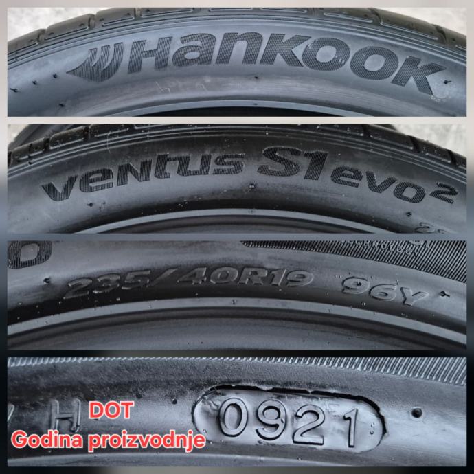 Polovne ljetne gume 235/40R19 96Y Hankook Ventus S1 Evo² / DOT0921 - 9 sedmica 2021 godine / dubina sare na obe gume 7 mm