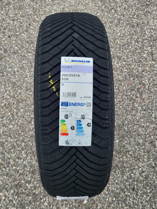 Nove zimske gume Michelin Alpin 7, dimenzije 205/55/16. Gume su nove s naljepnicama, svježi DOT, novi model gume, nikad montirane na vozilo. Mogućnost montaže. Cijena po komadu 109 eura.
