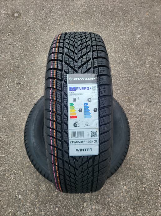 Nove zimske gume Dunlop Winter, dimenzije 215/65/16. Gume su potpuno nove s naljepnicama, nikad montirane na vozilo, svježi DOT, potpuno novi model gume, proizvedene u Europi, vrhunska kvaliteta i premium proizvođač guma. Mogućnost montaže.. Cijena po komadu 105 eura.