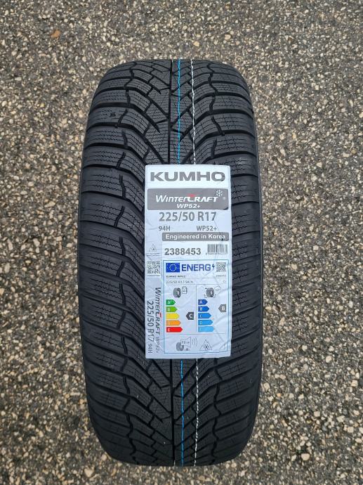 Nove zimske gume Kumho Wintercraft WP52+, dimenzije 225/50/17. Gume su nove s naljepnicama, novi model u odnosu na WP52, nikad montirane na vozilo, svježi DOT. Mogućnost montaže. Cijena po komadu 92 eura.