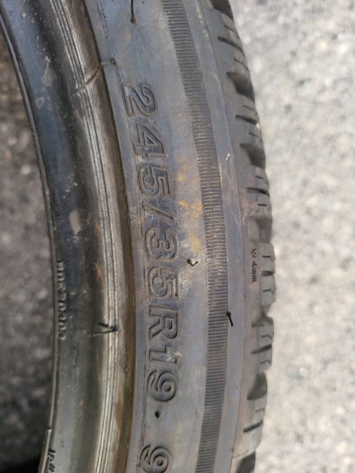 Dvije zimske gume Bridgestone Blizzak LM005, dimenzije 245/35/19, u top stanju, oko 6 mm profila, DOT2323, vrlo malo vožene, jednakomjerno trošene, bez ikakvih mana i oštećenja. Garancija na ispravnost. Mogućnost ugradnje. Cijena po komadu samo 60 eura, odnosno 120 za par (cijena jedne nove gume je inače oko 230 eura). Samo osobno preuzimanje.