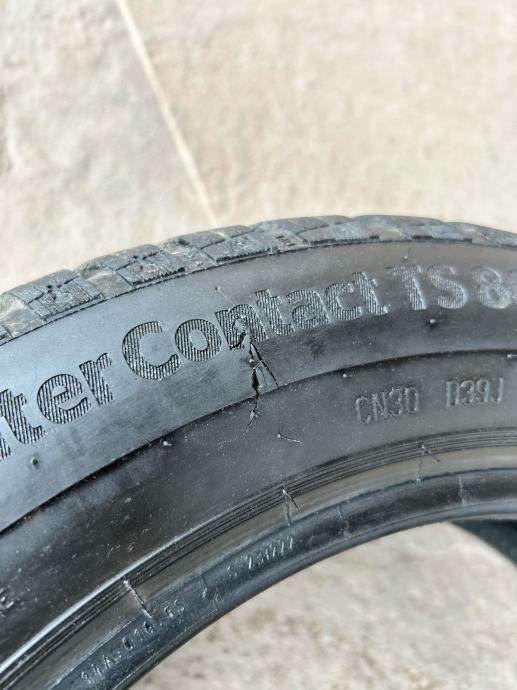 Prodajem navedene gume Continental 2kom. Gume su u odličnom stanju, debljina ripne 8mm DOT 2019. Kao što se vidi na slikama jedna bočnica je malo oštećena ali ne pušta. Cijena 30e za komplet fixno.
