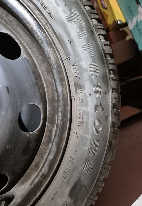 Skladištenje: Suh, taman prostor – gume nisu bile izložene suncu, skladištene na stalku u garaži