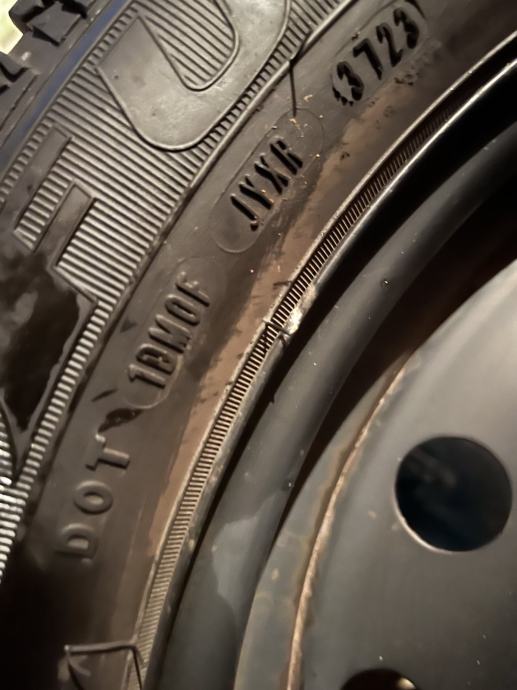 Zimske gume u odličnom stanju, DOT 3723, korištene jednu zimsku sezonu. Čelični naplatci, rupe 5x114.3, 4 komada.
