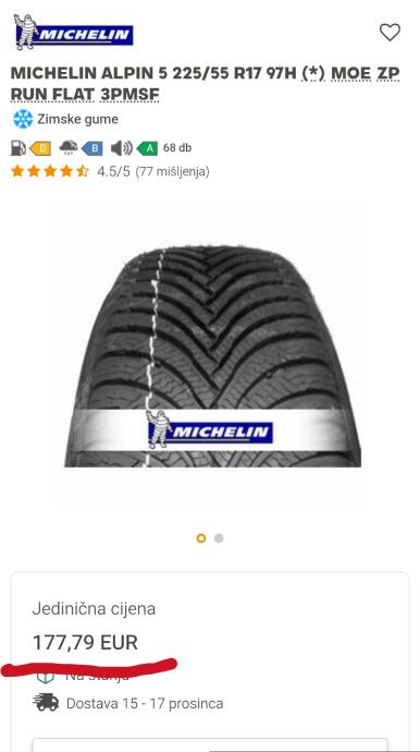 Gume zimske Michelin 225/55 R17. Run-Flat, MOE, RSC (Set 150.eur)