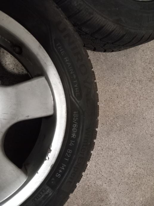 Prodajem set zimskih guma uniroyal 185/65/14 montirane na alu felgama.
