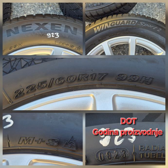 Polovne zimske gume 225/60R17 99H Nexen Winguard Sport 2 , dubina sare na sve 4 gume 7.5 mm / DOT0923 - 9 sedmica 2023 godine
