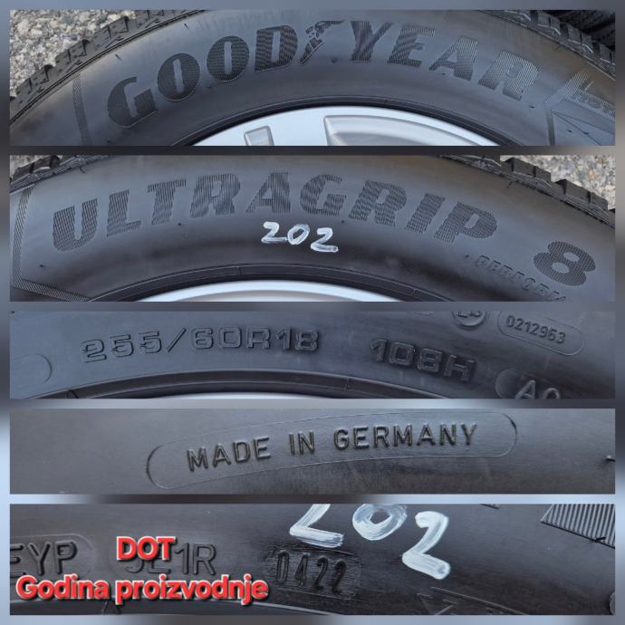 Polovne zimske gume 255/60R18 108H Goodyear Ultragrip 8 / sve 4 gume DOT0422 - 4 sedmica 2022 godine / dubina sare na sve 4 gume 8 mm
