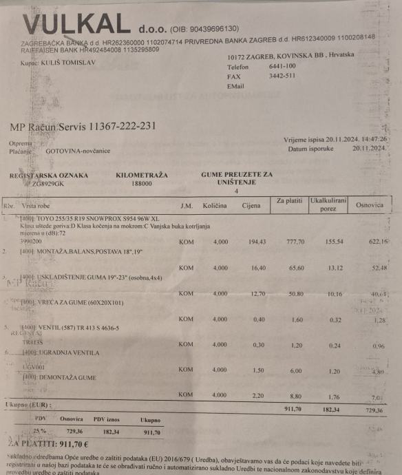 Račun i GARANCIJA uz gume