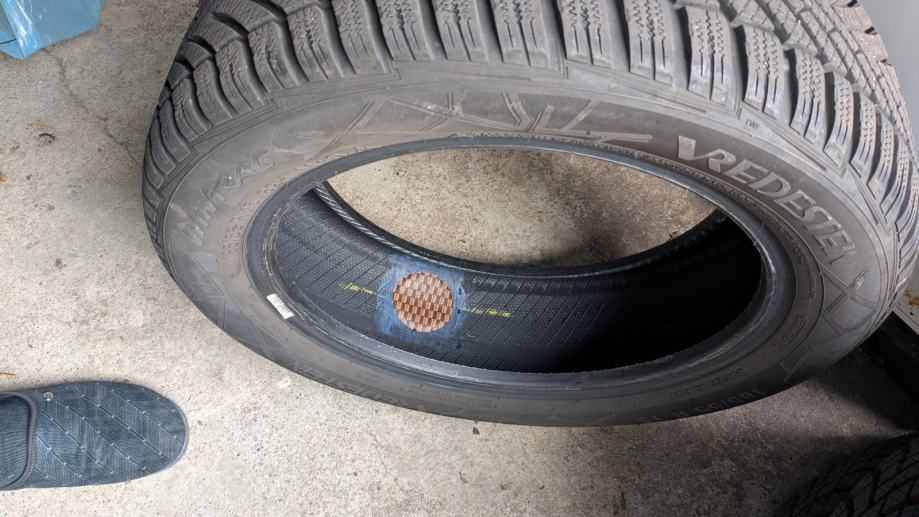 Gume su očuvane, mekane i ravnomjerno potrošene. Jedna Vredestein je krpana u Vulkalu (zadnja slika). Bile na Fiatu 500 koji je prodan na ljetnim.