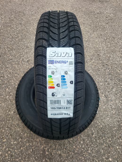 Nove gume Sava Eskimo S3+, dimenzije 165/70/14. Gume su nove s naljepnicama, nikad montirane na vozilo, svježi DOT. Mogućnost montaže. Cijena po komadu 51 euro.