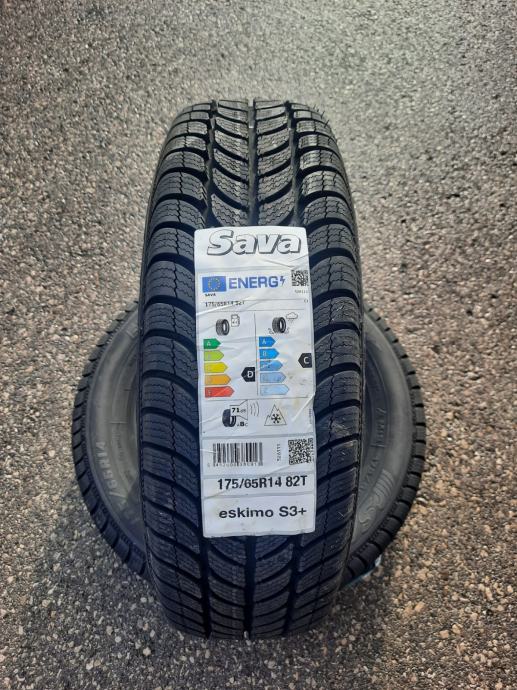 Nove zimske gume Sava Eskimo S3+, dimenzije 175/65/14. Gume su nove s naljepnicama, nikad montirane na vozilo, svježi DOT. Mogućnost montaže. Cijena po komadu 49 eura.