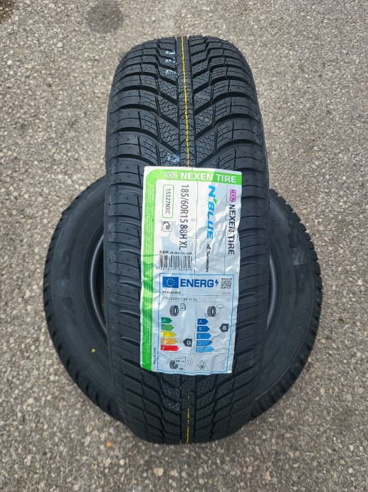 Nove cjelogodišnje gume Nexen NBlue 4 Season, dimenzije 185/60/15. Gume su nove s naljepnicama, potpuno novi model gume, nikad montirane na vozilo. Mogućnost montaže. Cijena po komadu 59 eura..