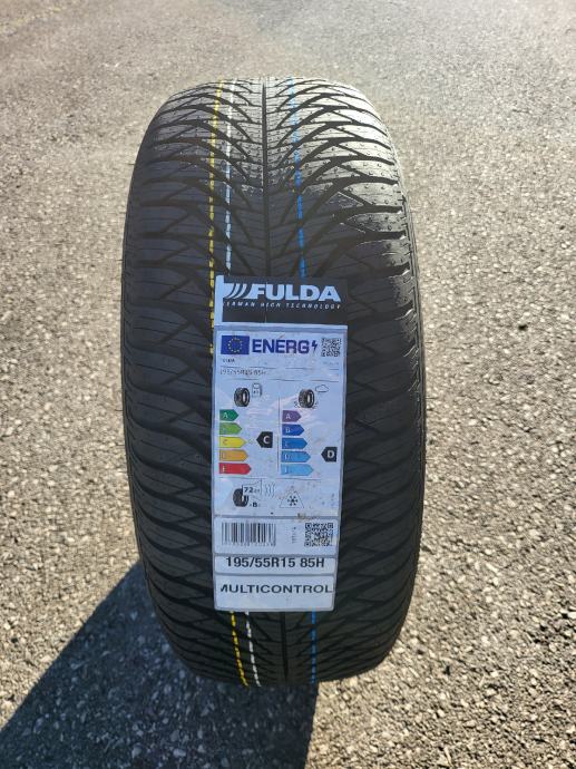 Nove cjelogodišnje gume Fulda Multicontrol, dimenzije 195/55/15. Gume su nove s naljepnicama, nikad montirane na vozilo, svježi DOT. Mogućnost montaže. Cijena po komadu 84 eura.