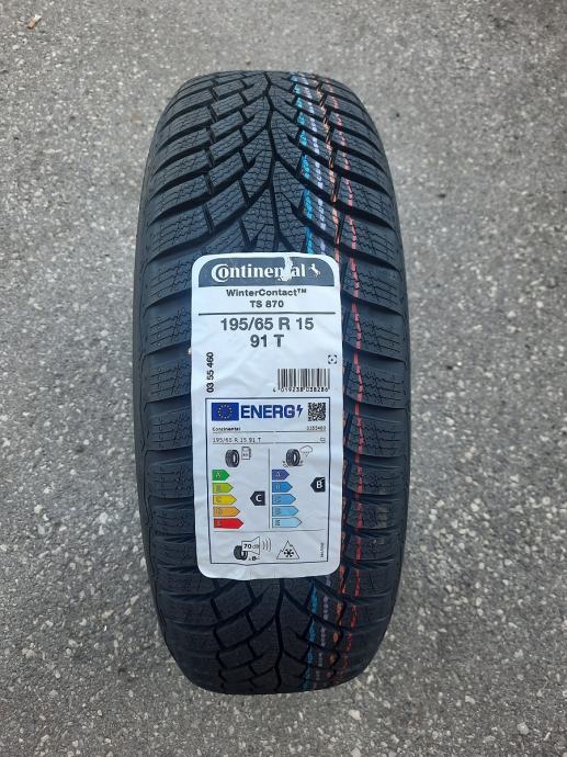 Nove zimske gume Continental Wintercontact TS870, dimenzije 195/65/15. Gume su potpuno nove, s naljepnicama, potpuno novi model, svježi DOT. Mogućnost montaže. Cijena po komadu 72 eura..