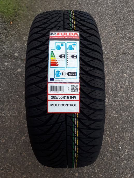 Nove cjelogodišnje gume Fulda Multicontrol, dimenzije 205/55/16. Gume su nove s naljepnicama, nikad montirane na vozilo, svježi DOT. Mogućnost montaže. Cijena po komadu 73 eura.