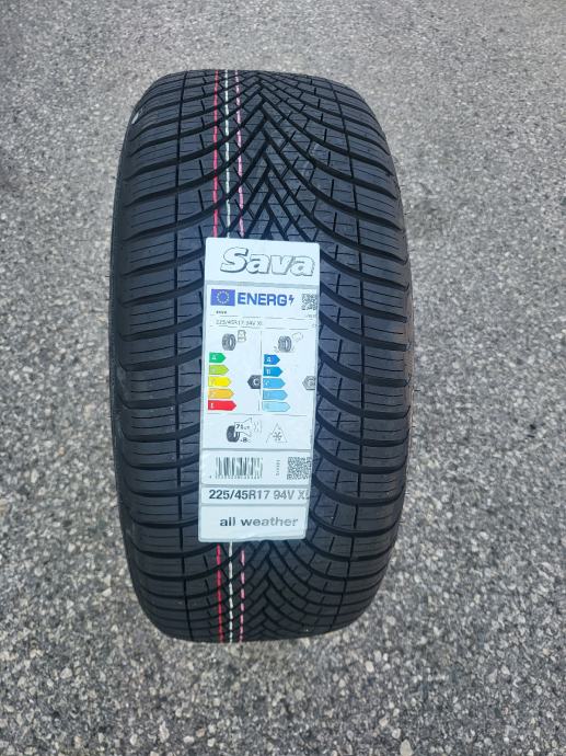 Nove cjelogodišnje gume Sava Allweather, dimenzije 225/45/17. Gume su nove s naljepnicama, svježi DOT, potpuno novi model gume, nikad montirane na vozilo. Mogućnost montaže. Cijena po komadu 77 eura.