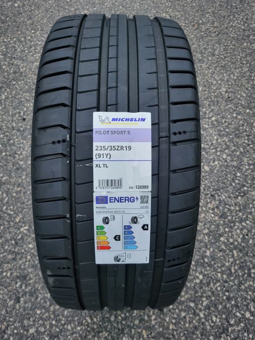Nove ljetne gume Michelin Pilot Sport 5, dimenzije 235/35/19. Gume su nove s naljepnicama, nikad montirane na vozilo, svježi DOT, potpuno novi model gume. Mogućnost montaže. Cijena po komadu 162 eura.
