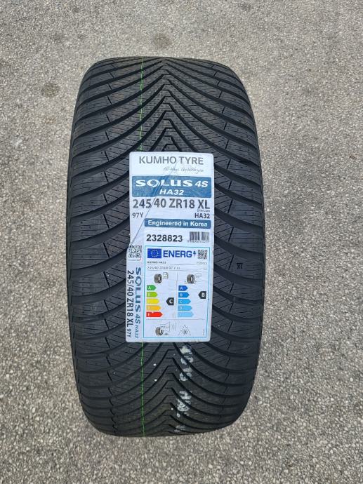 Nove cjelogodišnje gume Kumho Solus 4S HA32, dimenzije 245/40/18. Gume su nove s naljepnicama, potpuno novi model gume, nikad montirane na vozilo. Mogućnost montaže. Cijena po komadu 96 eura..