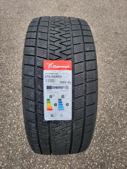 Nove zimske gume Gripmax Stature M/S SUV, dimenzije 275/45/20. Gume su nove s naljepnicama, nikad montirane na vozilo, svježi DOT. Mogućnost montaže. Cijena po komadu 120 eura.