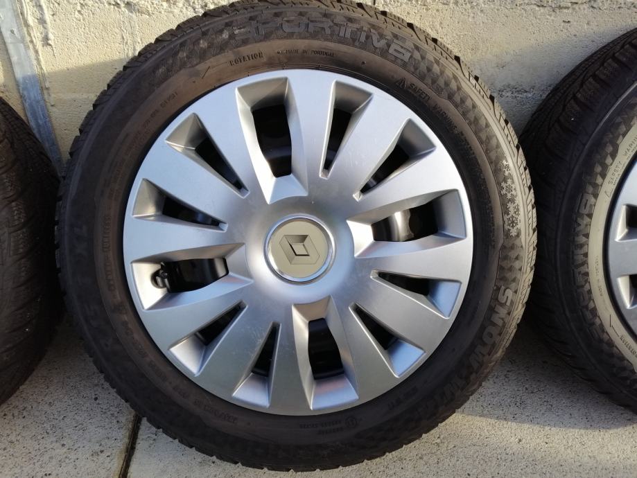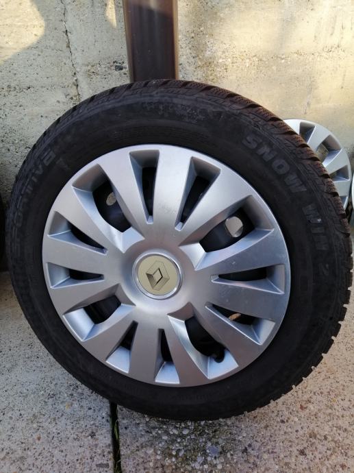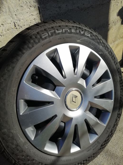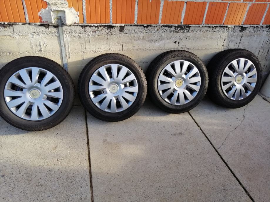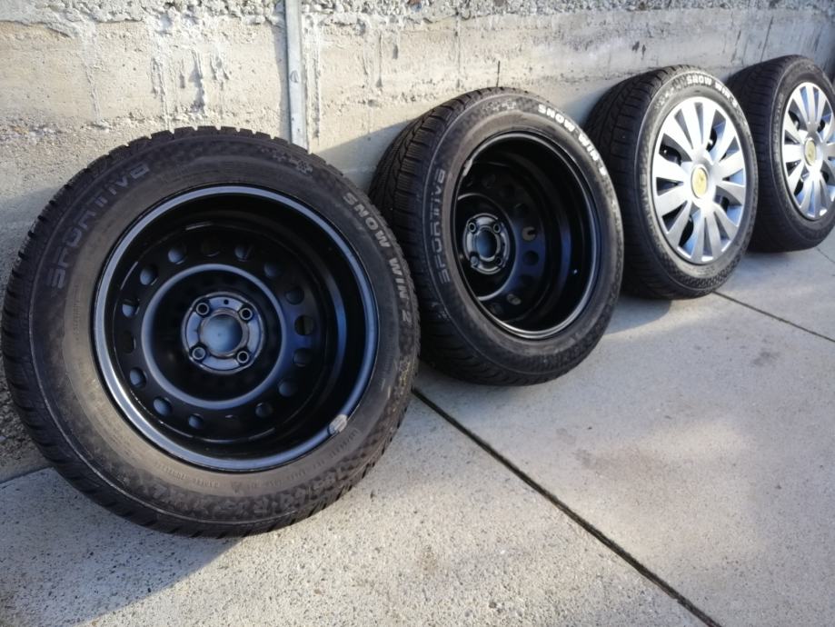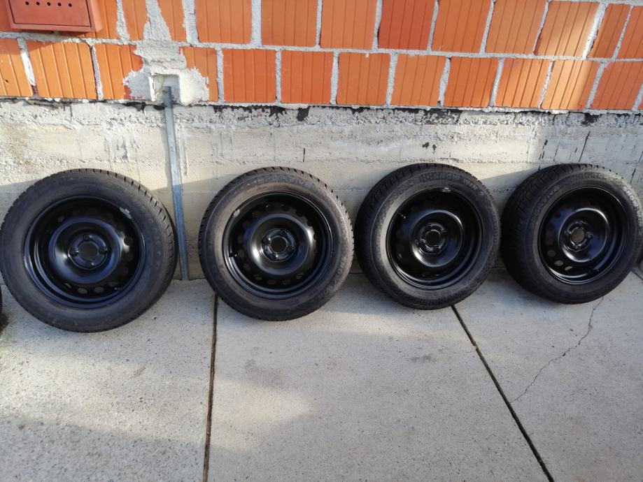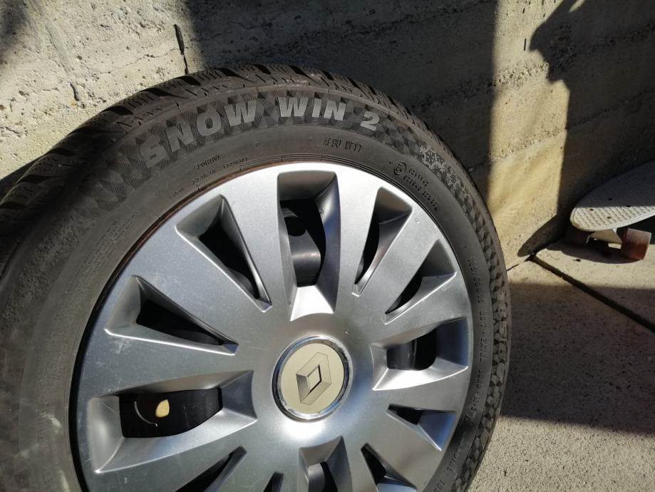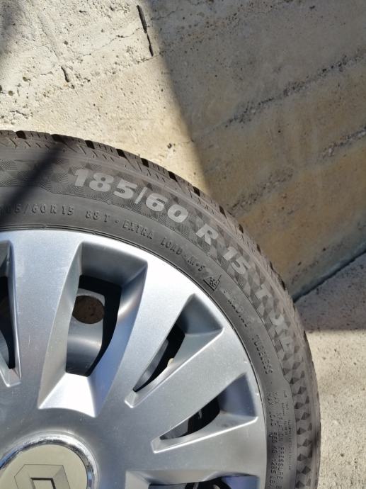 Gume zimske 185/60R15,(Sportiva-Continental)-(JEDNA MALO POVRŠINSKI OŠTEĆENA,NIJE PROBUŠENA,TU POKLANJM) sa novim felgama(6JX15H2,ET50)Razmak rupa 4x100 mm,centralna rupa 60mm.Dubina profila 7,5 do 8 mm.gume su bile na Renault Cliu 3.Pašu i na Megana, Modus,Daciu neke Opel Astre.(Samo felge plaćene više od 200 Eura).Oštećenje se vidi na zadnje dvije slike.DOT 3019.