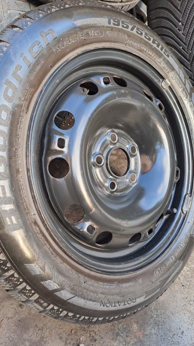 Wv Polo, Škoda Fabia, Seat čelične felge 15" 5x100 195 55 15 BF Goodrich winter 4 kom 220 eu.