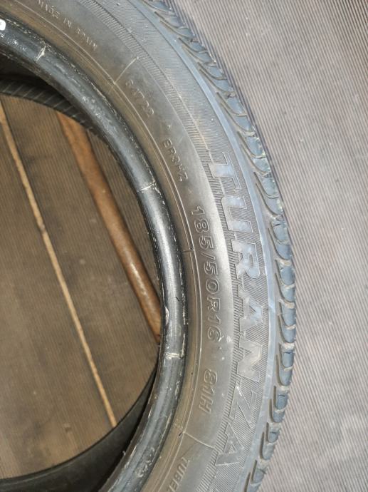 Prodajem 4 kom. ljetnih Bridgestone Turanza guma u dimenziji 185/50-16 - (91 H). Dubina profila na dvije gume je 7 mm, a na ostale dvije je 6 mm (potpuno nova guma ima 8 mm – gume su na 75% od novih). DOT 2012. Gume su 100 % ispravne i neoštećene.