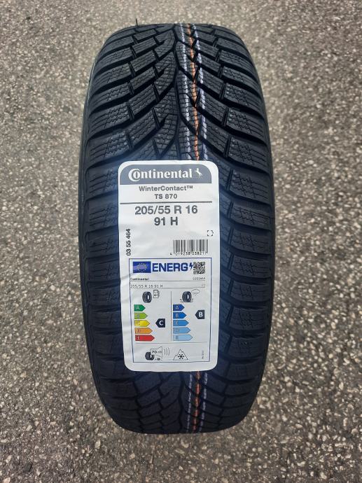 Nove zimske gume Continental Wintercontact TS870, dimenzije 205/55/16, svježi DOT. Gume su nove s naljepnicama, nikad montirane na vozilo, najbolje po ADAC testovima, potpuno novi model gume. Mogućnost montaže. Cijena po komadu 100 eura.