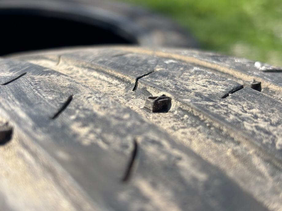 Jedna (DOT3019) ima šaraf u sebi i zbog toga pušta (u dva tjedna sa 2,5 na 2,3 bara mi je bilo), a bila je i jednom prije već krpana - sve vidljivo na slikama