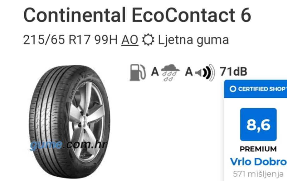 Prodajem odlične ljetne gume za SUV vozila.Continental EcoContact 6.Dimenzija 215/65 R17 99H.