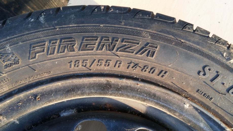 Gume Firenza, 185/55/14 ljetne, 4 kom sa celicnim felgama za Hondu Civic. Ripna cca 7 mm, kao nove, vozene jednu sezonu. cijena po komadu, 400 kn za sve 4 gume i felge