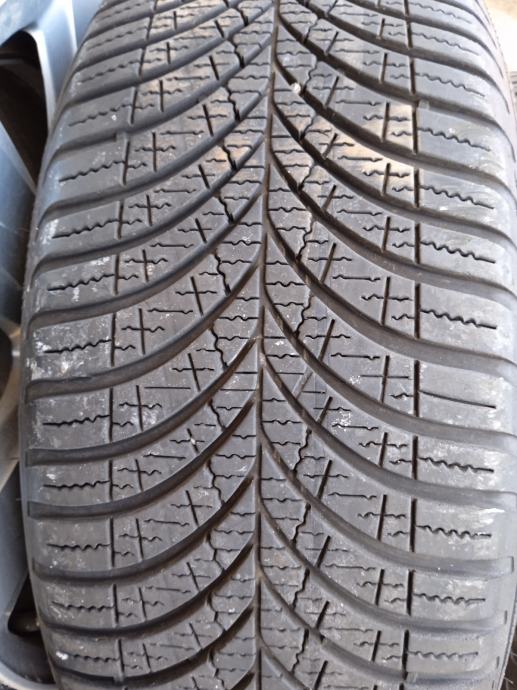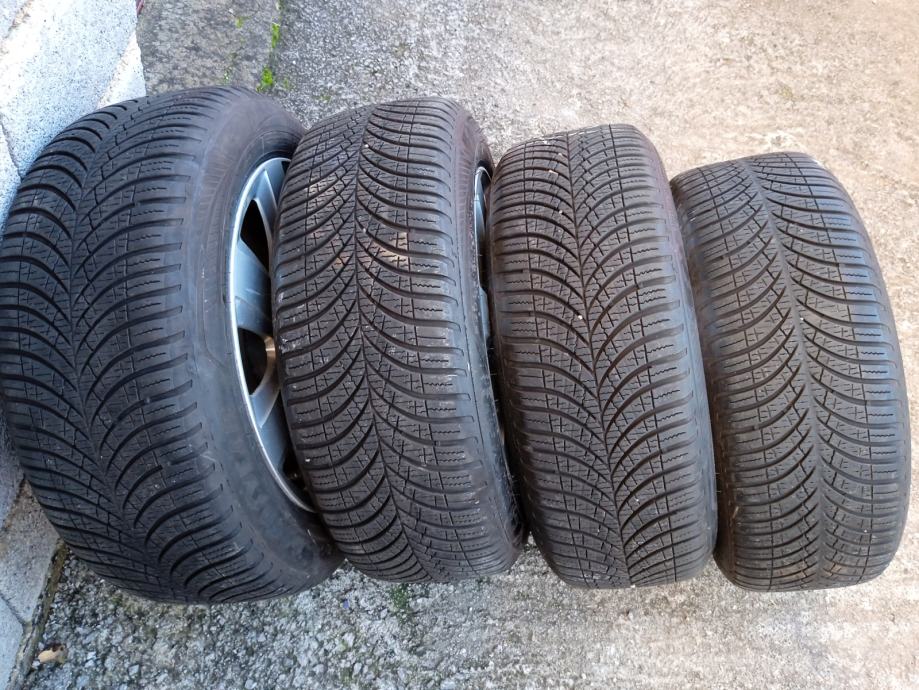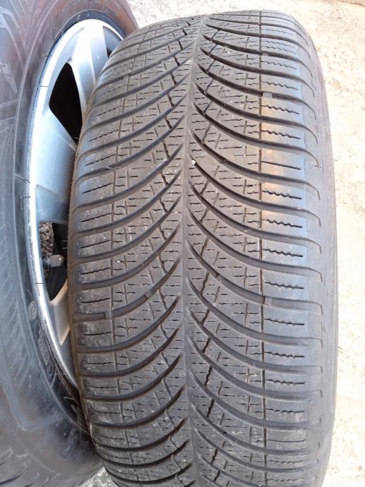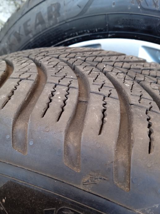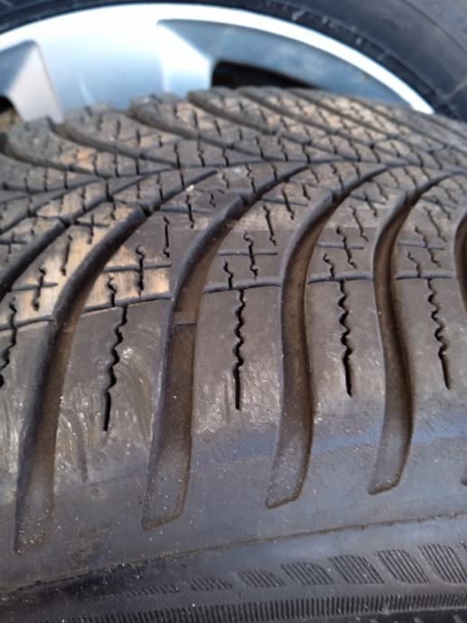 Dvije gume su DOT 2121, druge dvije DOT 3621, cjelogodišnje gume, M+S karakteristika, sa oznakom snježne pahuljice vožene prošlu zimu u Rijeci (cca 5000 km) praktično nisu ni trošene, felge jako dobro očuvane, izbalansirane i ne tresu, sitne ogrebotine i nečistoće vidljive na slikama.