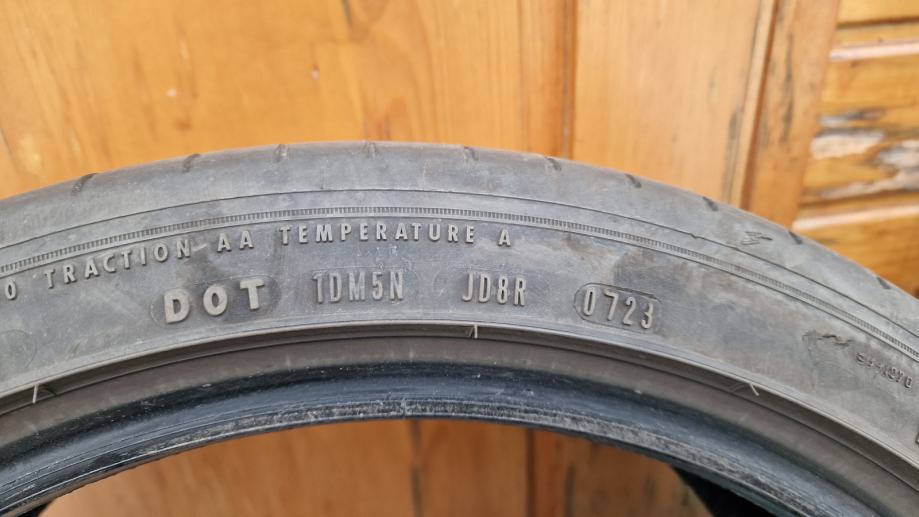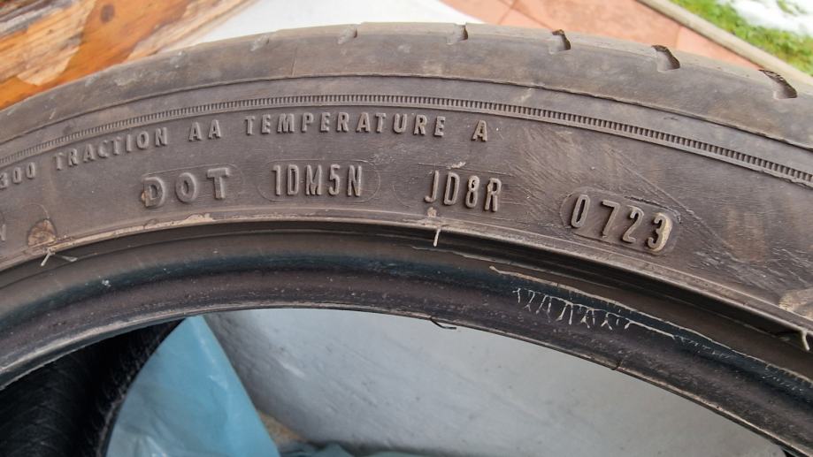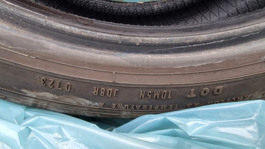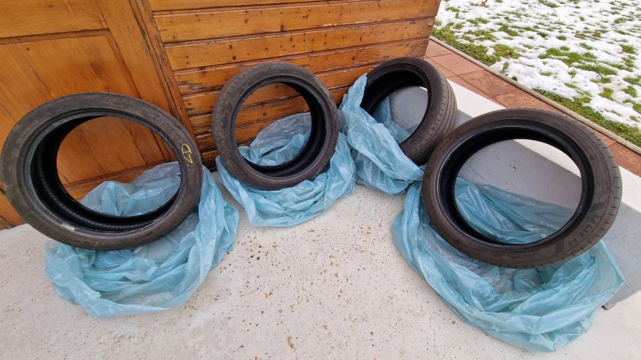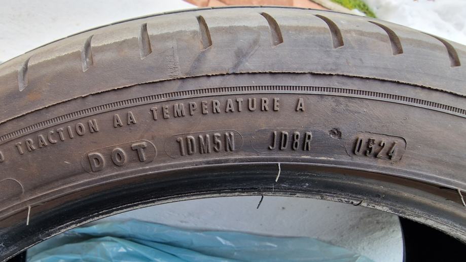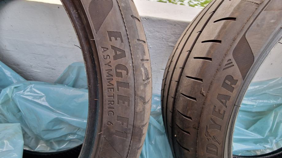 Prodajem 4 gume Goodyear F1 Asymmetric 6 225/40 R18 92Y XL MFS ; 3 imaju DOT 0723 i 4 mm ripne, jedna guma je DOT 0524, 6 mm ripne (zamijenila je prethodnu gumu koja je bila oštećena bez mogućnosti krpanja). Stanje vidljivo na slikama, sve su ispravne. Dolaze sa zaštitnim vrećama. Jedna nova guma je cca. 100 €.