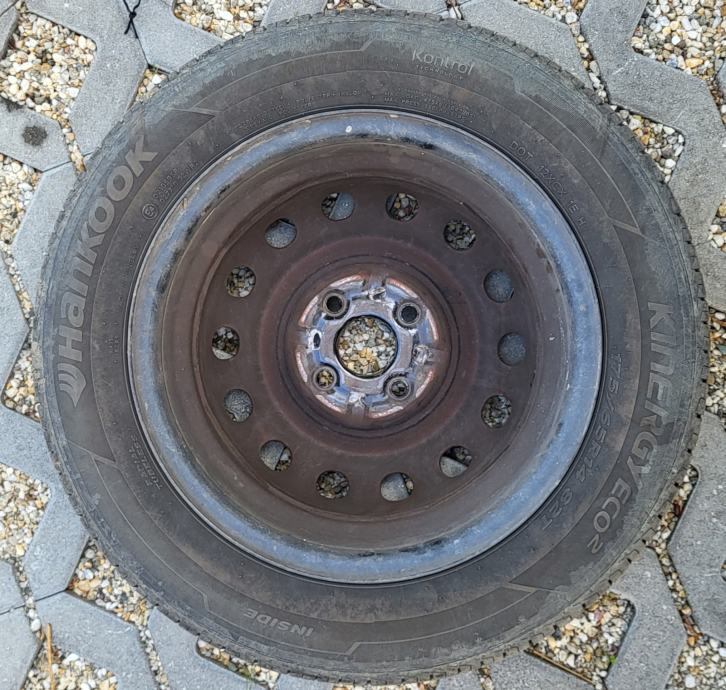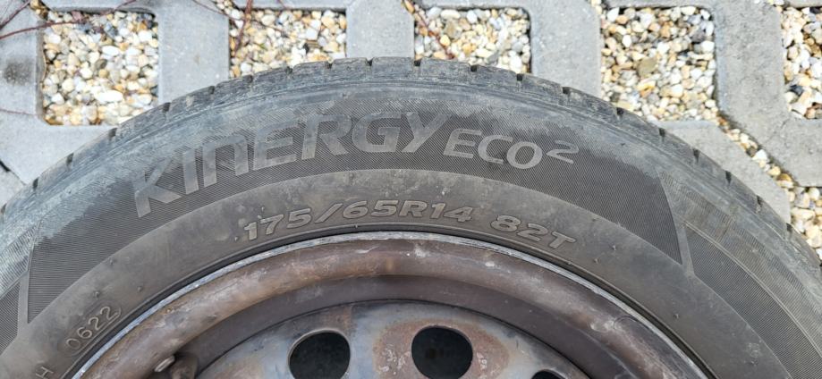 Prodajem 4 ljetne Hankook gume profila 175/65 R14 na čeličnoj felgi, vožene samo 1 sezonu (2023) proizvedene 2022.